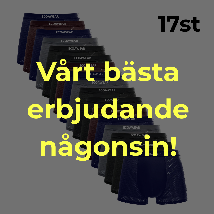 Just nu får du extra mycket komfort. Under en begränsad tid får du 17 par ECOAWEAR Boxers för endast 599kr + Gratis försäkrad frakt!